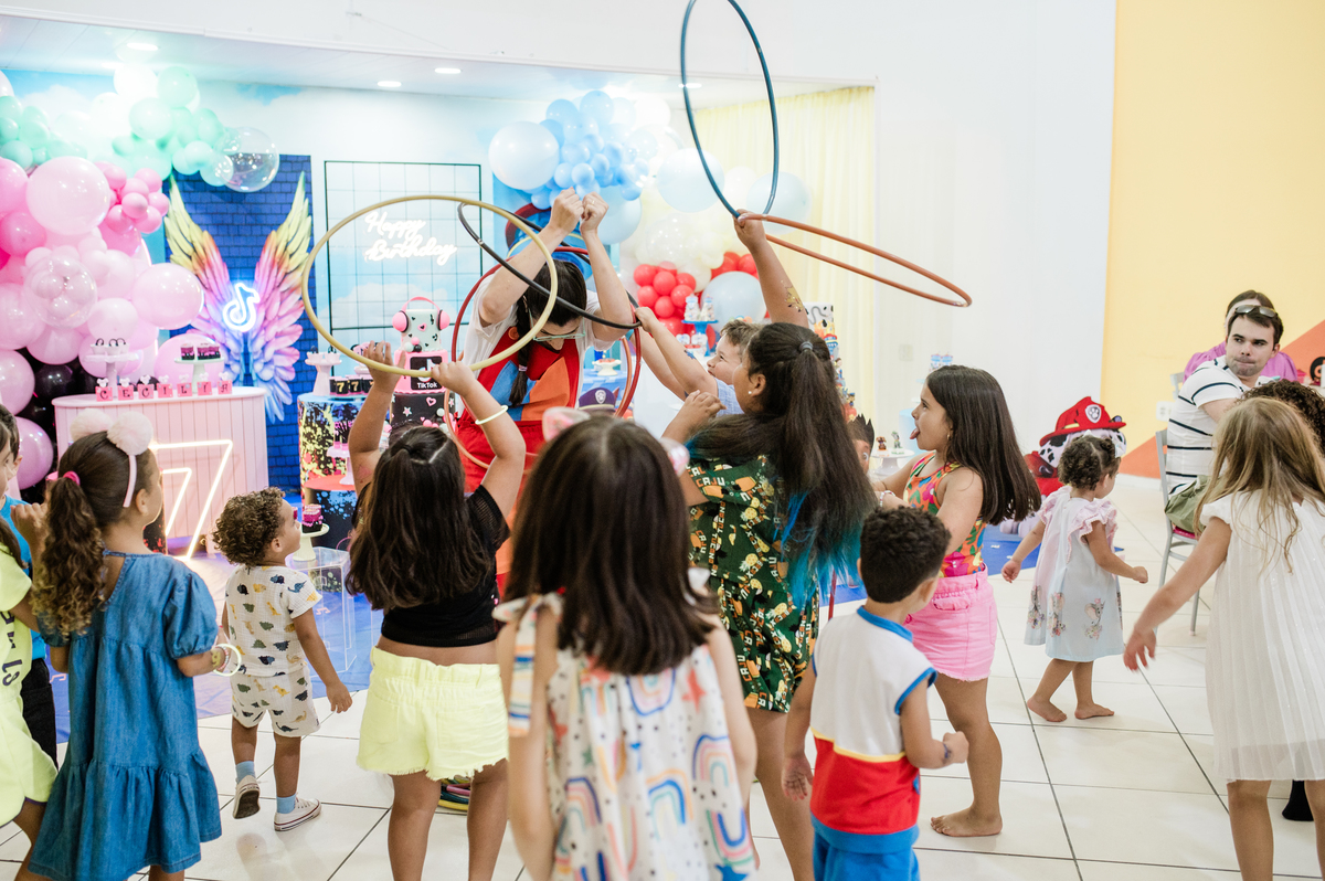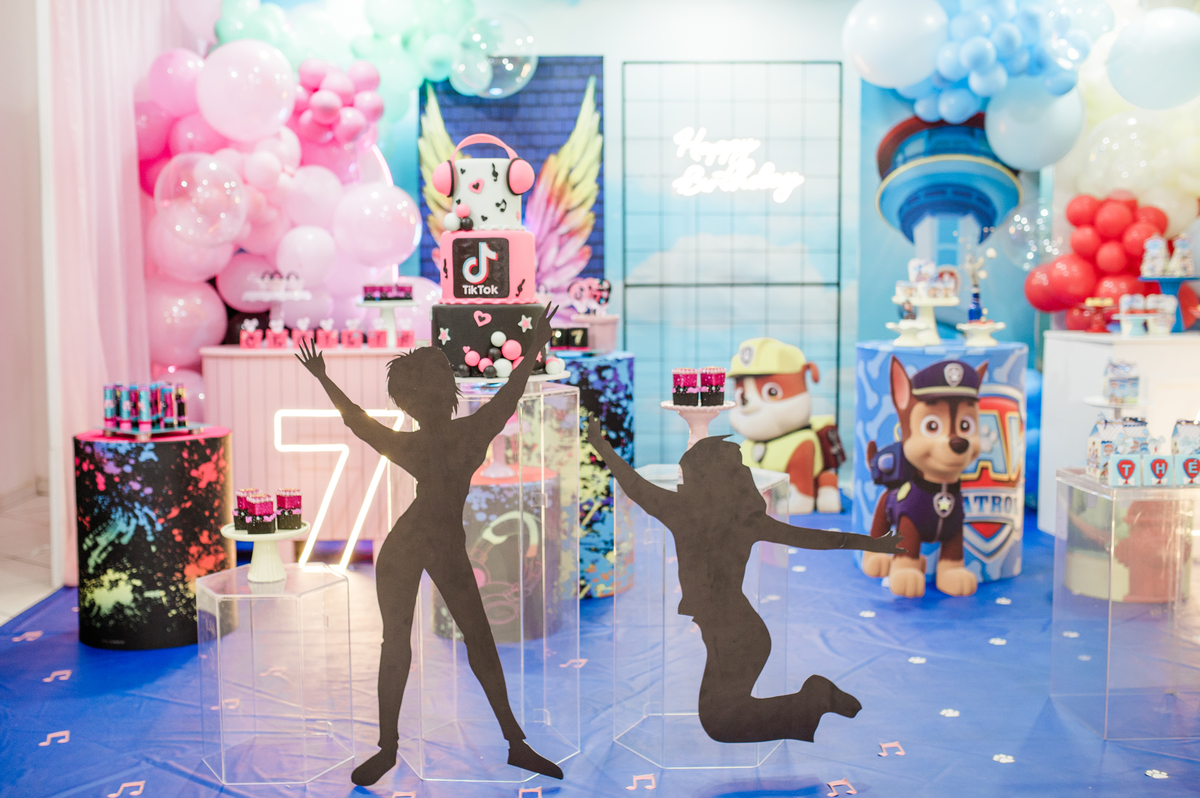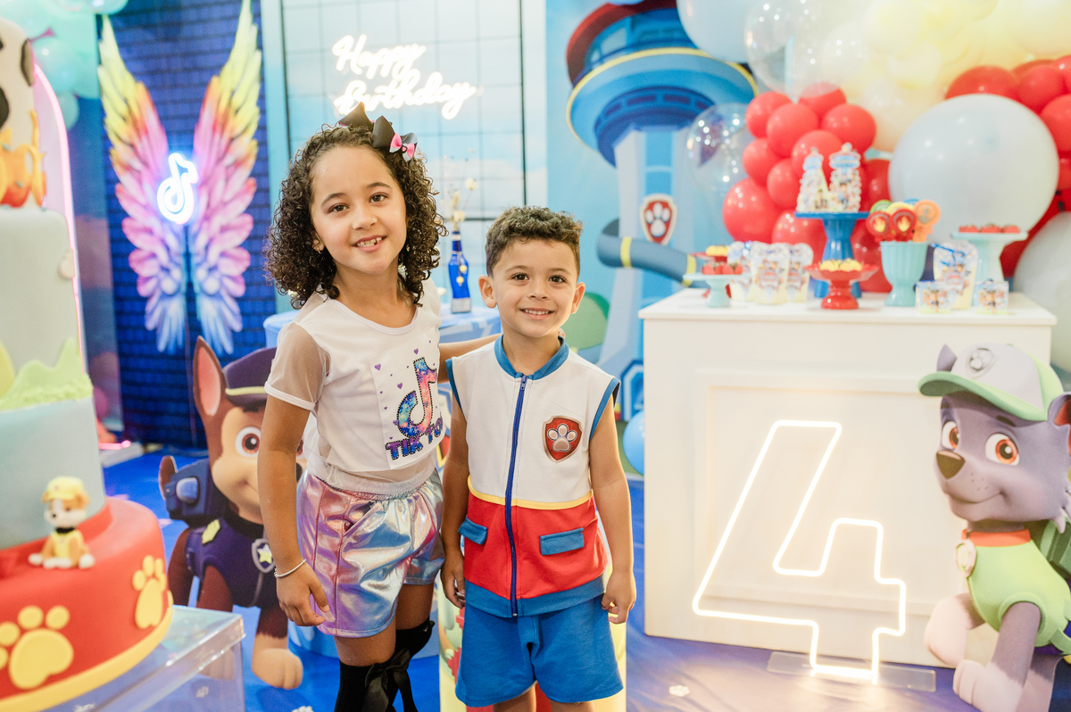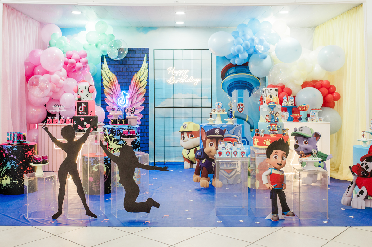Festa de aniversários dos irmãos Cecília e Theo, cada um escolheu seu tema preferido e comemoraram com seus amiguinhos a mágia do aniversário.